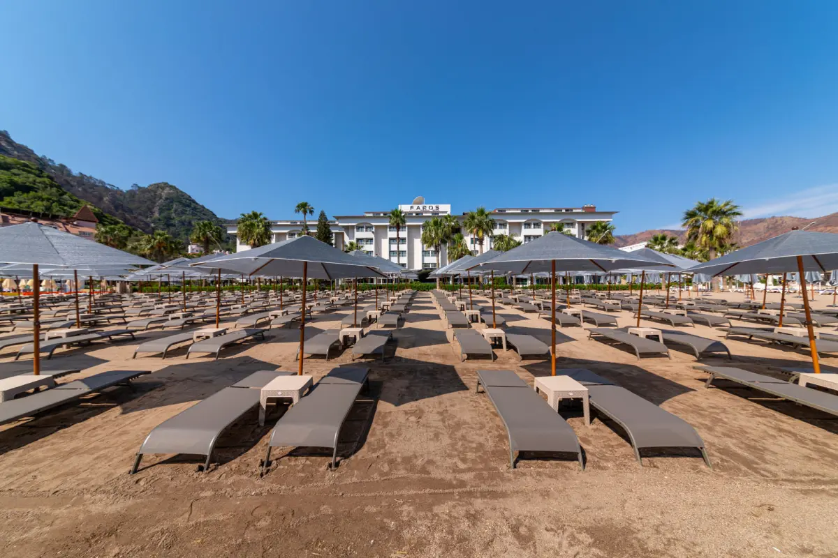 * Şemsiye, şezlong, şezlong minderi ve plaj havlusundan misafirler ücretsiz yararlanabilirler.
